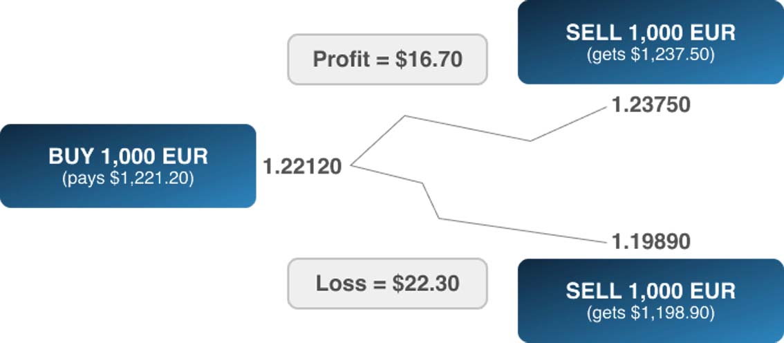 When you go long on EUR/USD, you’re theoretically buying euros with dollars. When you close the trade, your profit or loss will be calculated in dollars. If the euro strengthened against the dollar, you’d get more dollars when you close the transaction. If the euro weakened, you’ll get back fewer dollars.