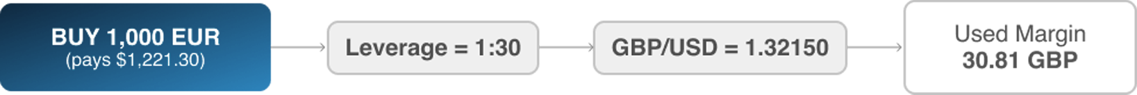 With leverage, you’re able to open larger positions than your capital would otherwise permit. When you trade forex CFDs with Trade Markets, you can use leverage as high as 1:30; meaning you only need to provide margin to cover 3.33% of the position’s value.